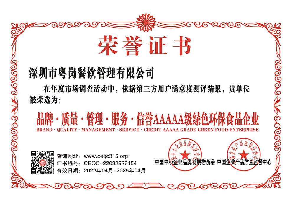 深圳市粵崗餐飲管理有限公司,是一家集蔬菜種植和農(nóng)副產(chǎn)品配送為一體的專業(yè)型餐飲公司,主要為學(xué)校、工廠企事業(yè)機(jī)關(guān)單位提供蔬菜和農(nóng)副產(chǎn)品配送服務(wù)。公司自成立以來始終以質(zhì)優(yōu)價廉、服務(wù)至上為原則,嚴(yán)格按照ISO:9001國際標(biāo)準(zhǔn)體系進(jìn)行管理。同時建立了行業(yè)領(lǐng)先的配送中心、大型冷庫和保鮮庫、檢測中心以及專業(yè)化的配送團(tuán)隊,能長期安全、穩(wěn)定、準(zhǔn)時的配送貨物。我們所有蔬菜均經(jīng)過初步加工、無黃葉,無泥沙等雜質(zhì),利用率達(dá)97%以上...保障向用戶提供的各類食材的衛(wèi)生和質(zhì)量。公司為了適應(yīng)不同客戶的需求,配有專業(yè)人員和配送車輛,實行“一對一”的服務(wù)體制,一心一意的為客戶服務(wù),秉承粵崗誠實守信、服務(wù)第一、客戶至上的服務(wù)標(biāo)準(zhǔn),真正讓客戶花最少的錢吃最好的菜。粵崗多年來何以欣欣向榮,因為我們知道只有勇于擔(dān)當(dāng)責(zé)任,才能承擔(dān)更大的責(zé)任,就是因為 粵崗員工貫徹公司態(tài)度決定一切、細(xì)節(jié)決定成敗的真理,從質(zhì)量抓起,從服務(wù)做起,才創(chuàng)造了如今的規(guī)模化供應(yīng)、統(tǒng)一性配送、專業(yè)化服務(wù)的粵崗。